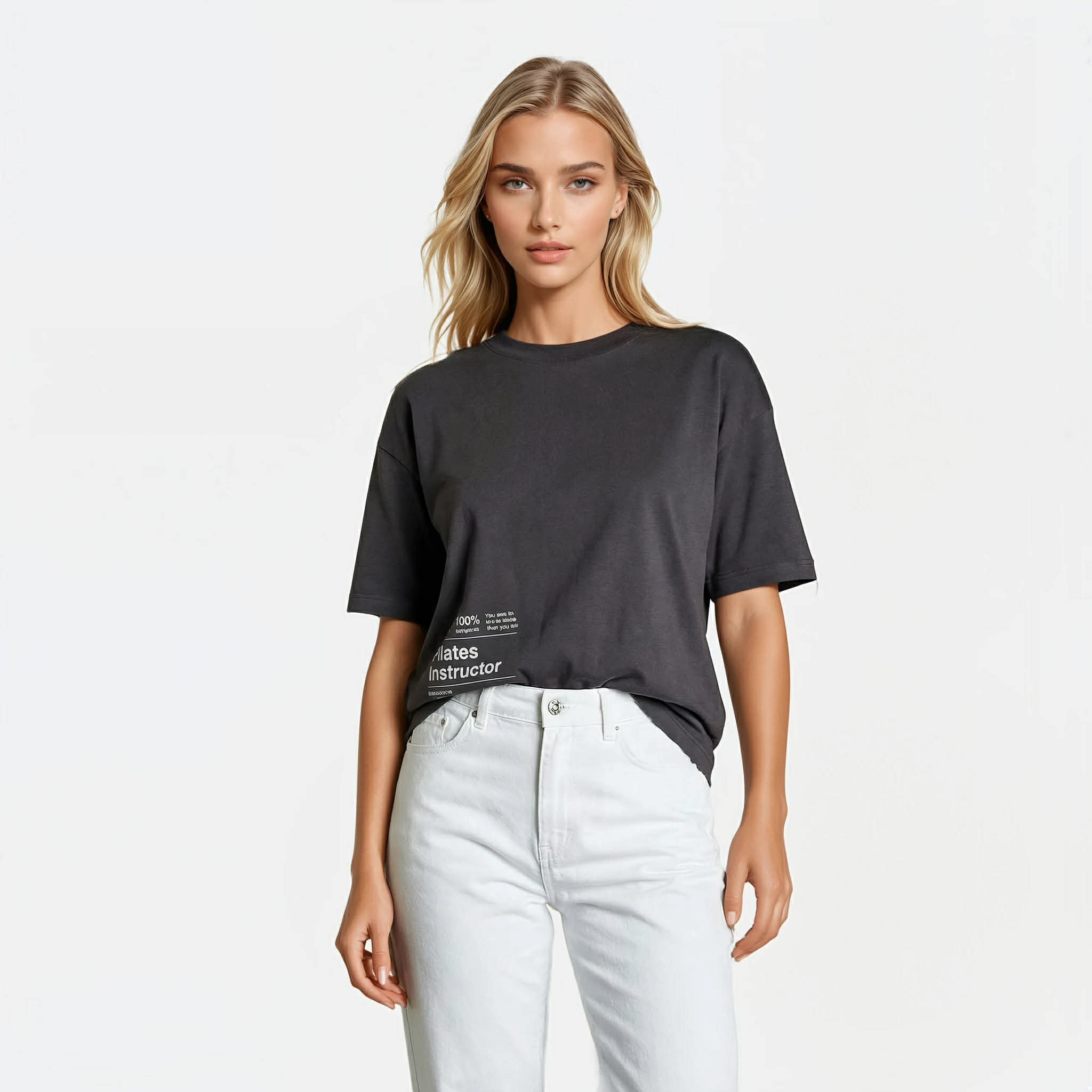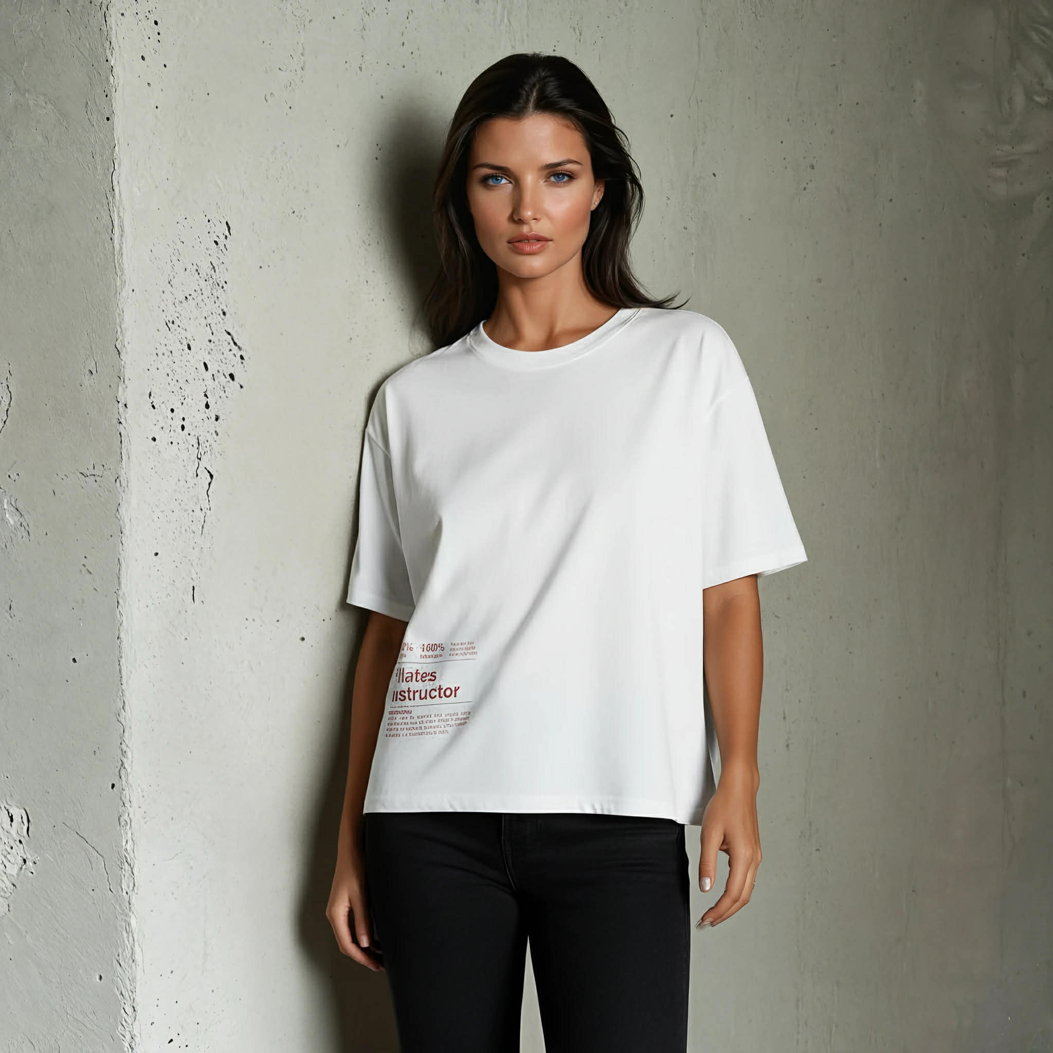 Cotton oversized T-shirt with a modern print and contemporary design.Its comfortable fit makes it an ideal choice for long hours of teaching, and everyday wear, offering freedom of movement and a pleasant feel on the body.